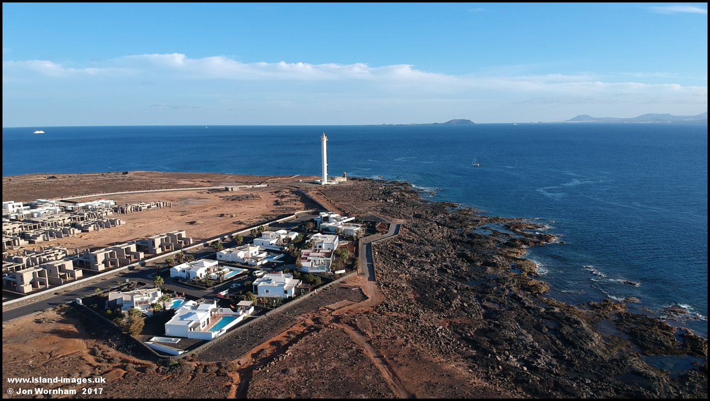 Punta Pechiguera, the southwest tip of Lanzarote island, with Lobos island and Fuerterventura on the horizon