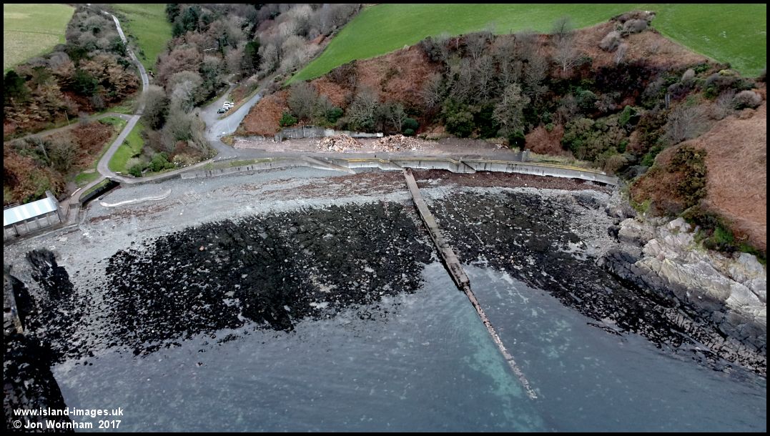 A near vertical view of the Port Soderick beach area. The funicular used to descend the cliffs on the right of picture and a public footpath is still available there.