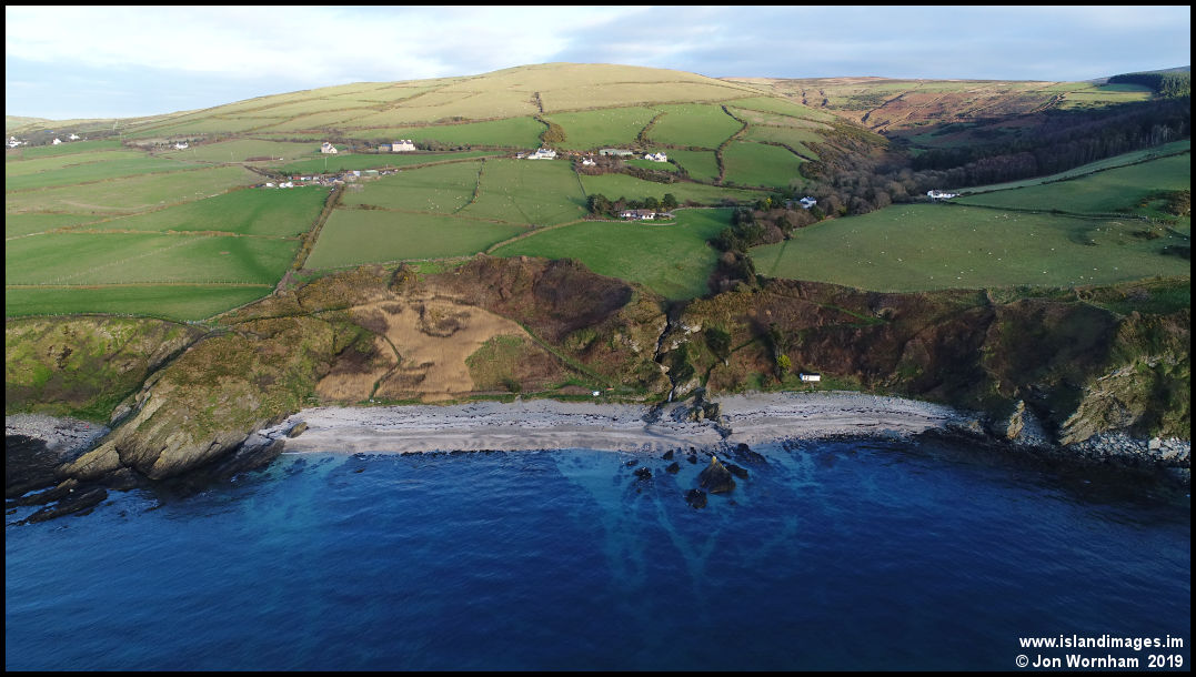 Traie Vane, a pebble beach with a waterfall and beachside fisherman's cottage.