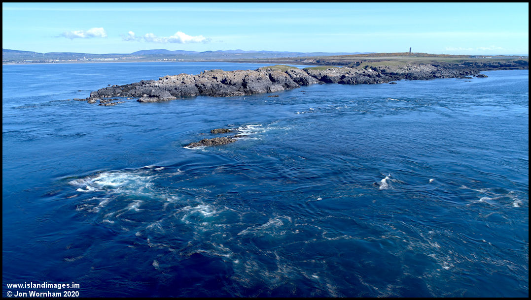 Coming down lower to look at the disturbed waters around the Skerrans, where tidal flows are mixing together in contrast to otherwise calm waters.