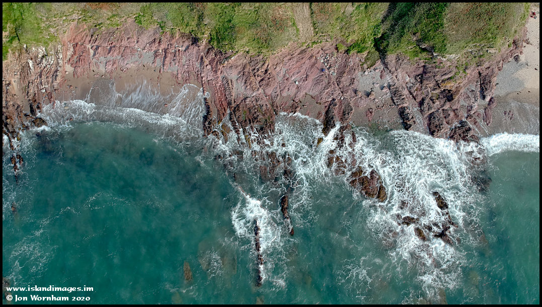 Pink rocks and turquoise seas at the north end of Whitestrand.