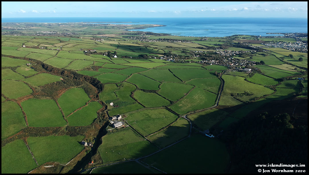 Looking inland from Fleshwick, across Surby ad Colby, with Scarlett and the Langness peninsula in the distance.
