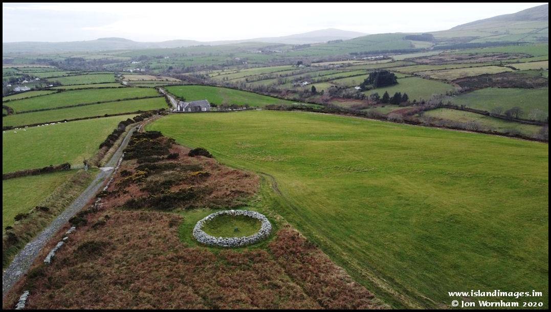 This shot is looking past the site of an ancient Tynwald, marked by the later circle of stone, down to St Luke's church.