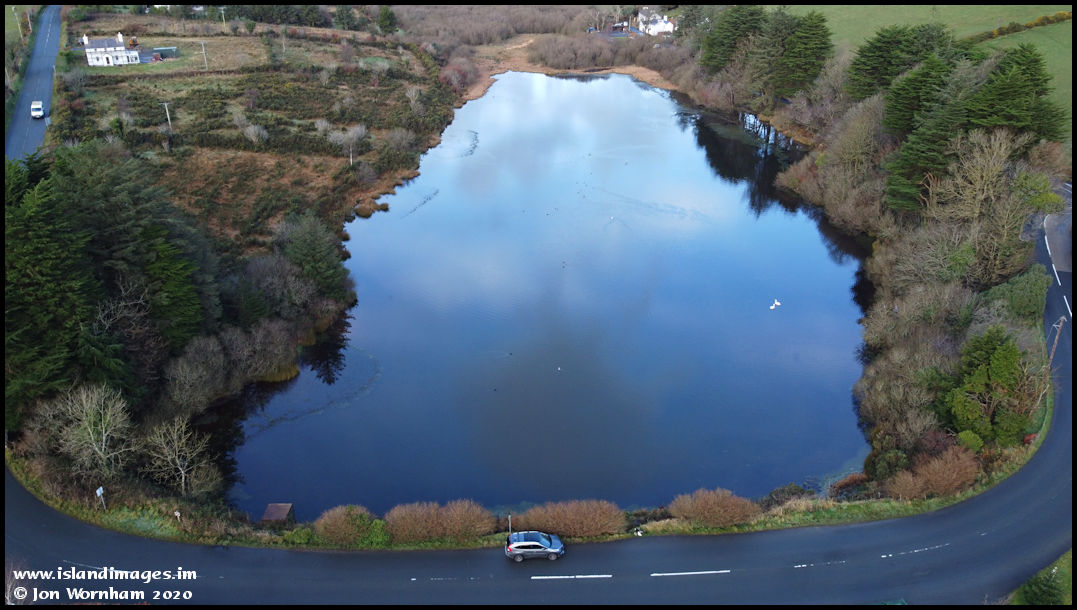 The Foxdale to Douglas road loops around the eastern side of the dam. The two swans that can be seen on the water were very interested in what I was doing, but I think were expecting food!