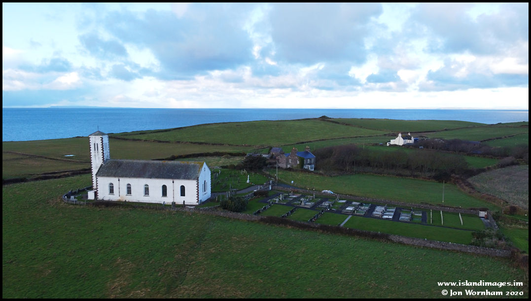 Now looking in the opposite direction past the church, The Mull of Galloway in southern Scotland can be seen above the tower.