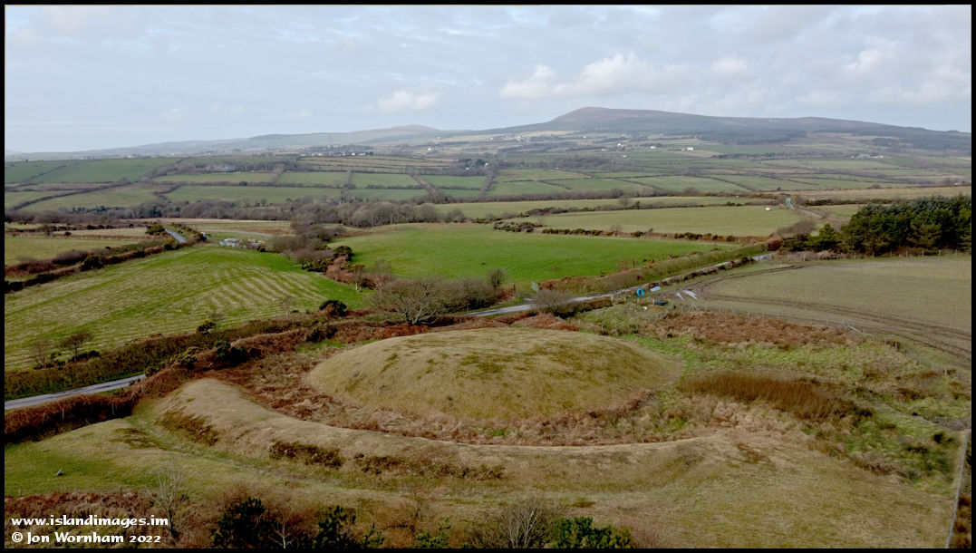 A lower level view acros the site, looking in a westerly direction with South Barrule in the distance.