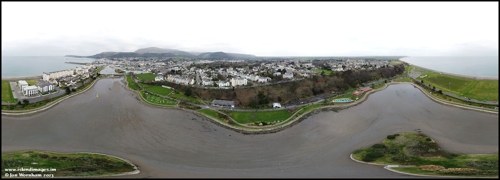 Ramsey from overhead Mooragh Park Lake. The lake had been drained for maintenance.