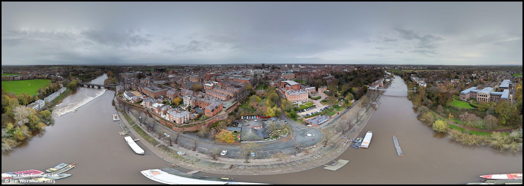 The City of Chester from overhead the River Dee.