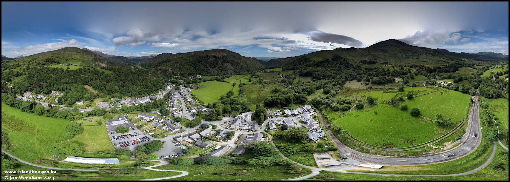 The penultimate flying location of the day was at the pretty village of Beddgelert. The Welsh Highland narrow gauge railway is almost directly below the drone, although there were no trains whilst we were there.