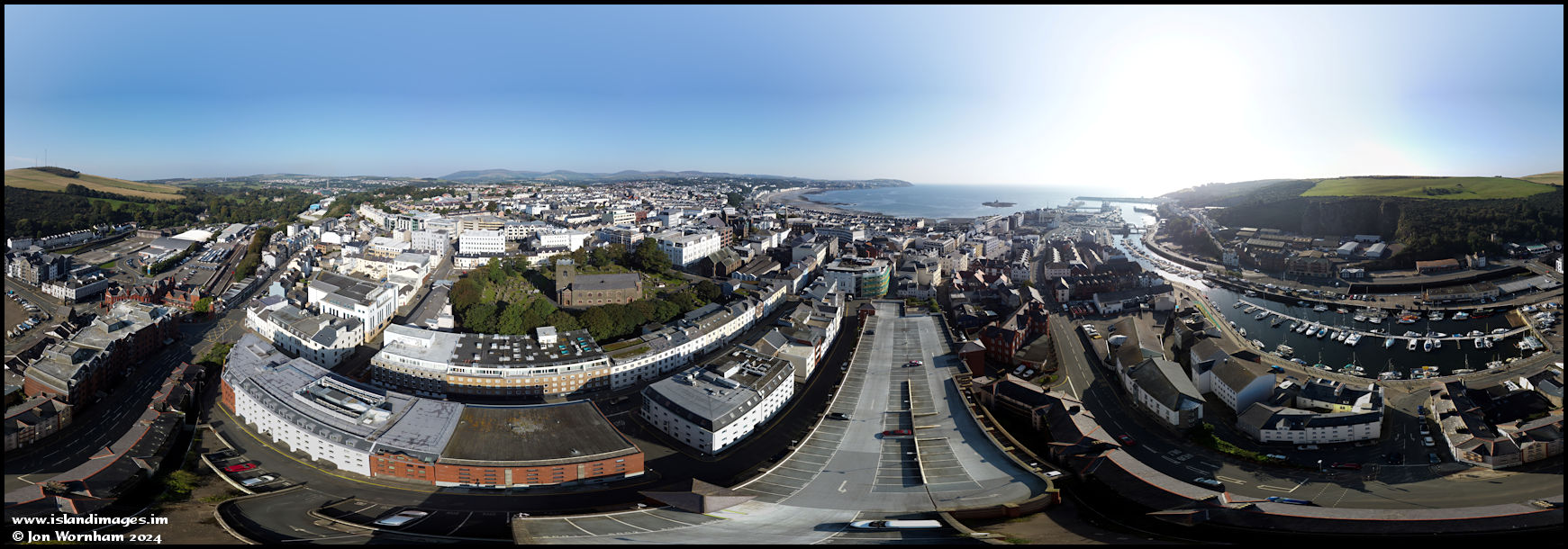 360 degree panorama of the central area of Douglas, shot from 200 ft up.
