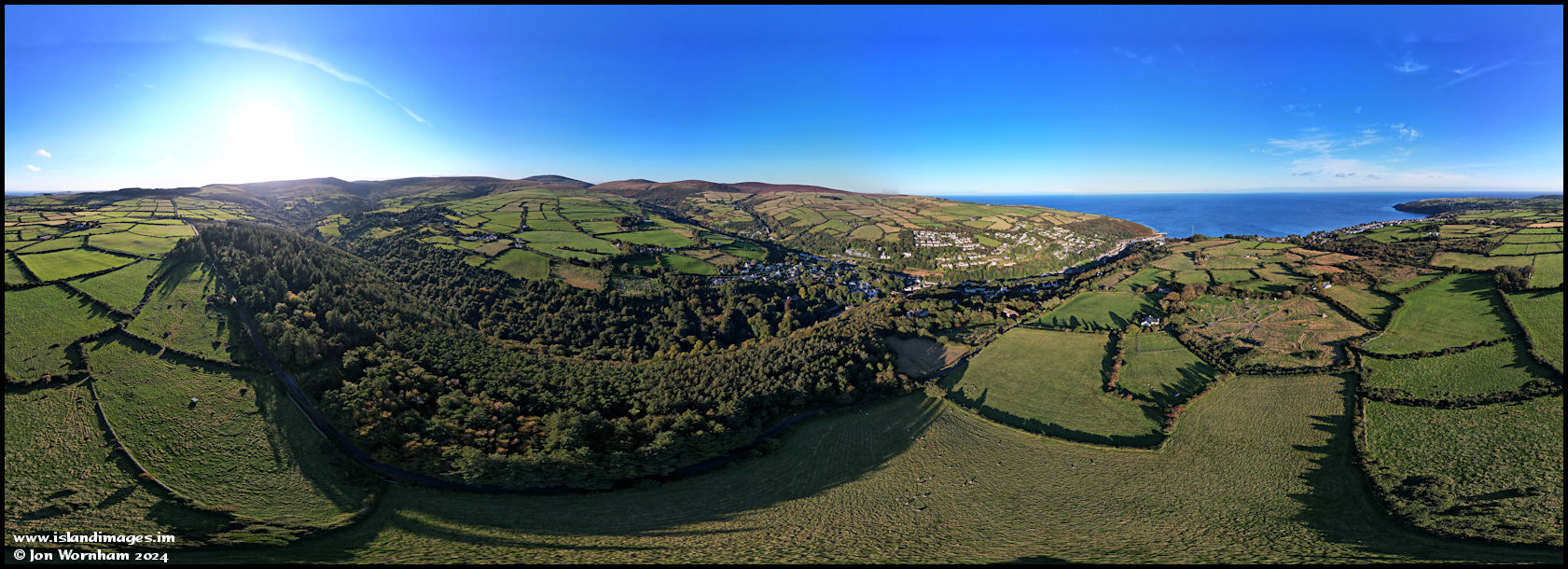 360 degree panorama of Axnfell Plantation and Laxey. Auto stitched in the drone by 'Fly'
