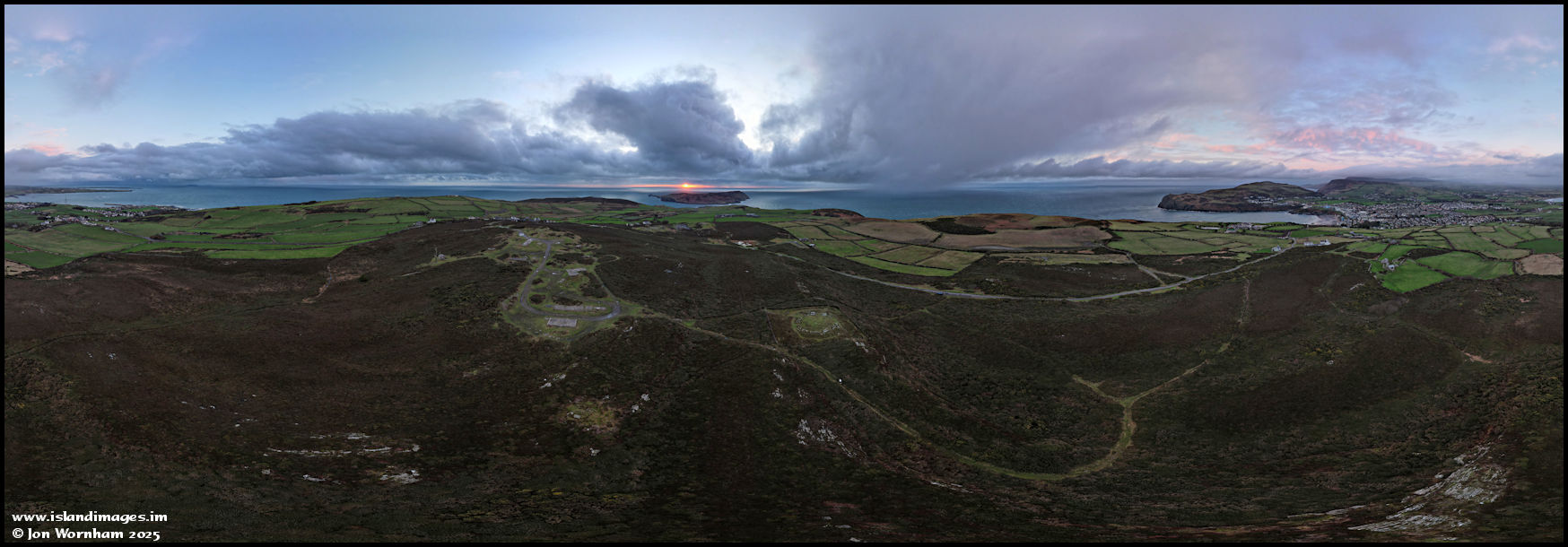 A 360 degree panorama at Mull Hill, shot at the moment the sun appeared from behind the cloud bank, just in time to set into the Irish Sea!