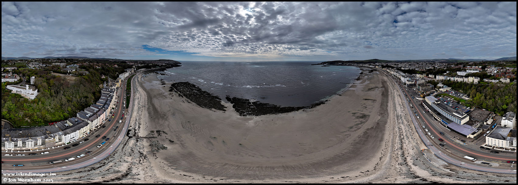 panorama shot from overhead Douglas Beach at low tide, featuring the former