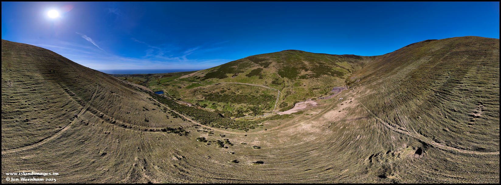 360 degree panorama at Ballakinnag Glen. This first panorama was the 'high level' one. I was flying from the hillside track anyway, but flew to a higher level at first.