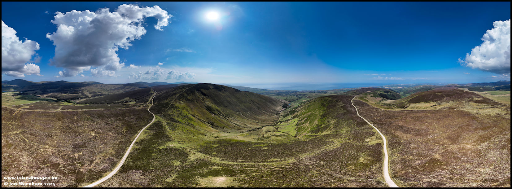 A 360 degree panorama from the top of the 'U' shaped glacial valley of Ballakinnag Glen, then rotating around to look over Slieau Dhoo and Druidale.