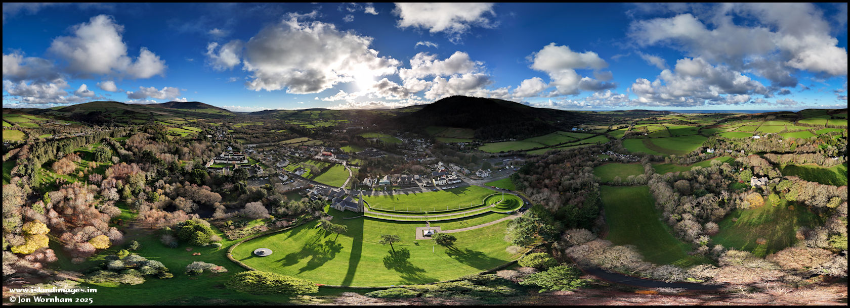 Tynwald Hill, St John's Church and the National Park Arboretum.
