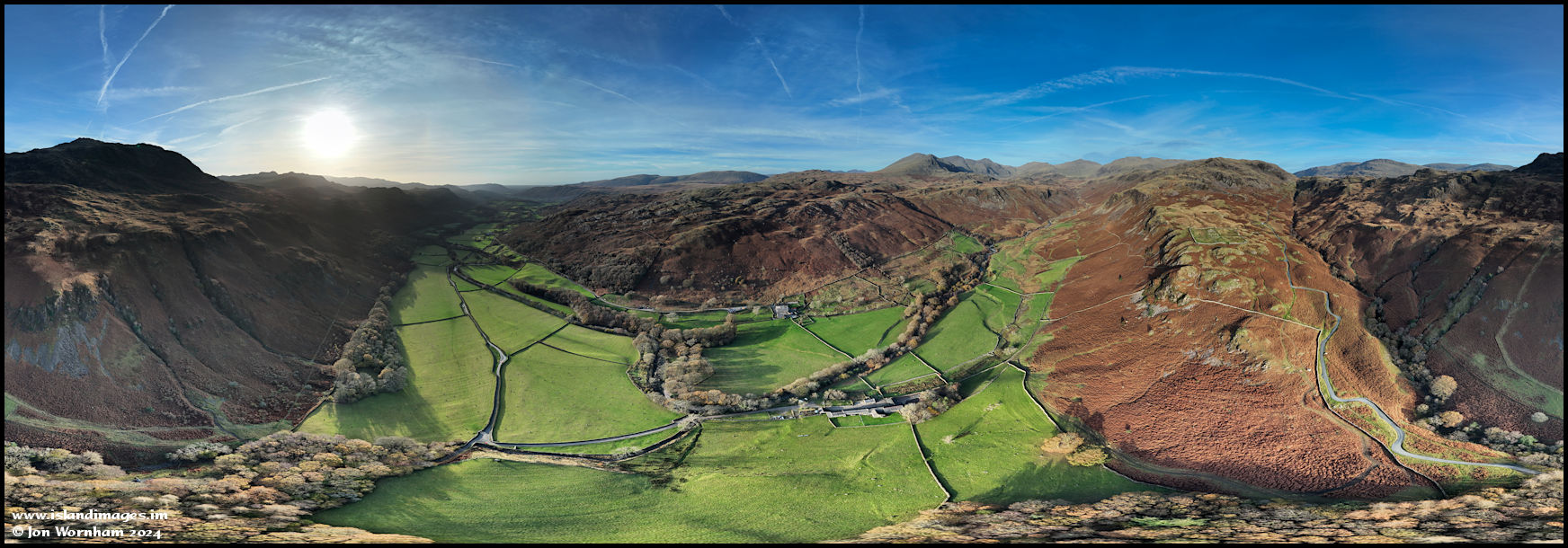 A big contrast between the greens of the Eskdale Valley and the uplands browns, with the Hardknott Pass climbing up past the Roman fort, before it drops down into Little Langdale.