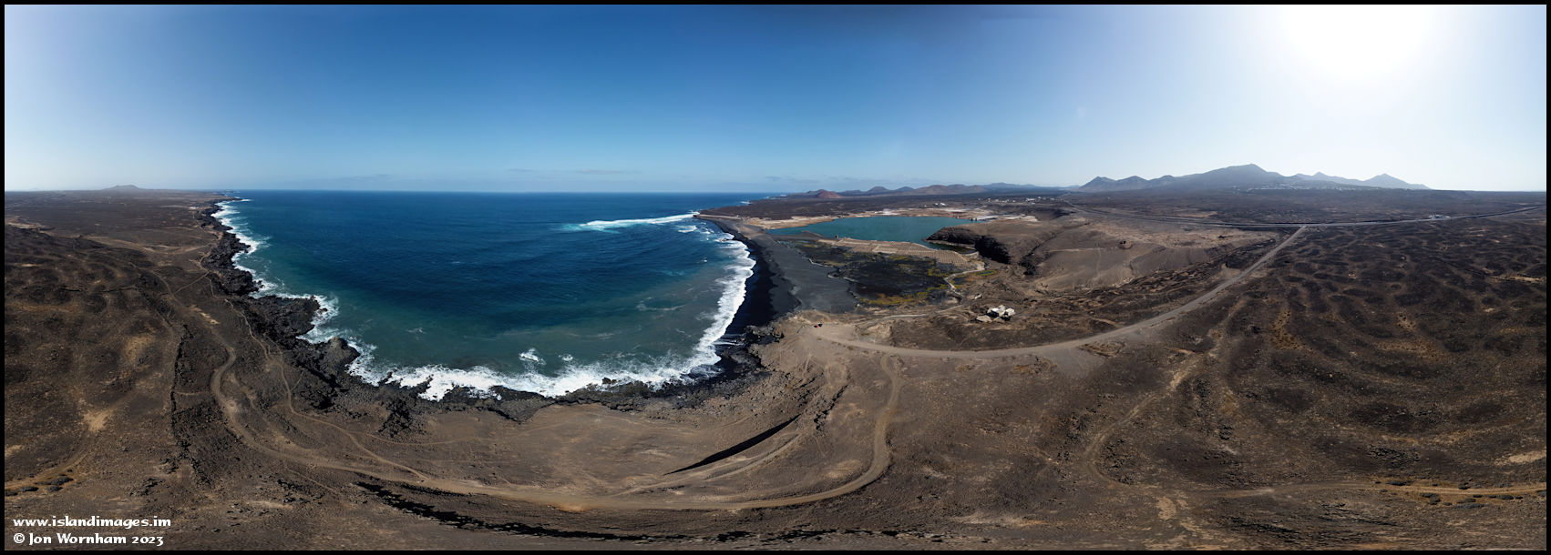 Playa de Janubio. The black volcanic beach that retains the water in the lagoon. Not really recommended for bathing as the beach shelves steeply and big Atlantic waves roll up it.