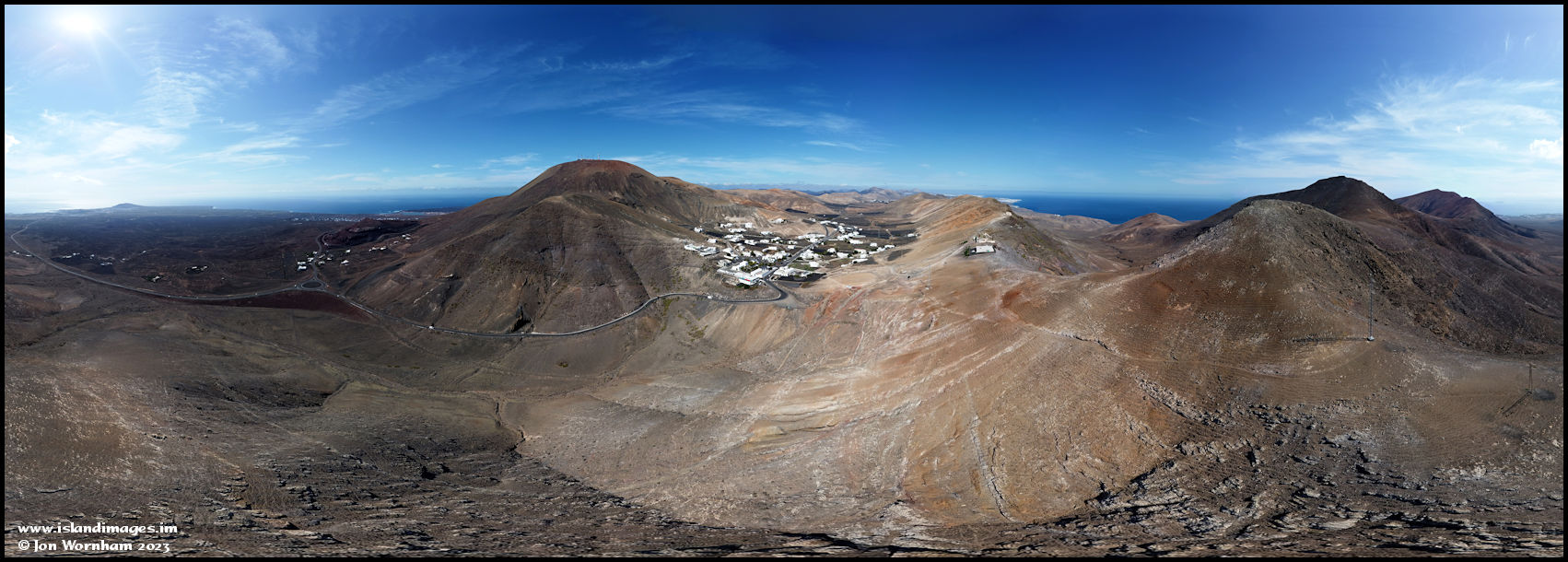 Another angle on Femes, showing the steep road up better. As it pans around you can see the Salinas de Janubio on the coast, before Playa Blanca comes into sight in the hazy distnce.
