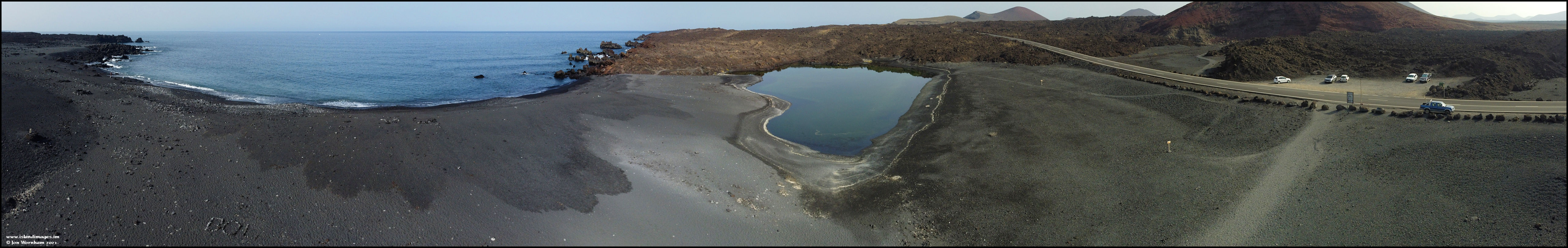A manually shot 'flat' panorama of the beach. I'm a little embarrased that I manged to cut the top off the mountain though! Stitched from nine original pictures.