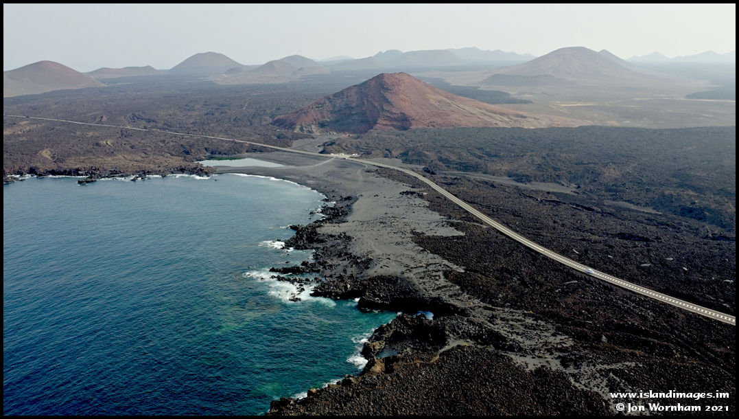 The beach and Montana Bermeja. As you can see it's quite hazy which has muted the colours of the volcano cone somewhat, which normally contrast strongly with the black lava fields around it.
