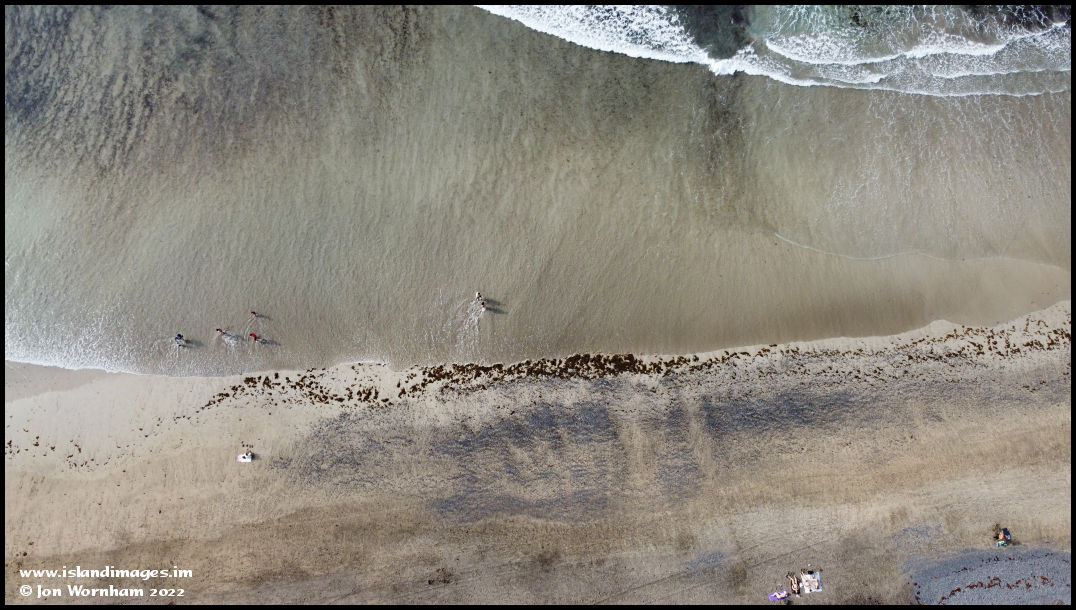 A wave sweeps in and the walkers are now paddlers!