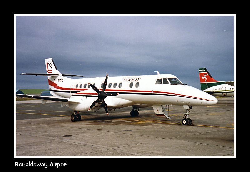 Former Loganair Jetstream 41, G-LOGK, still in their colours but now with Manx Airlines titles. This aircraft was re-registered in 1994 as G-MAJE