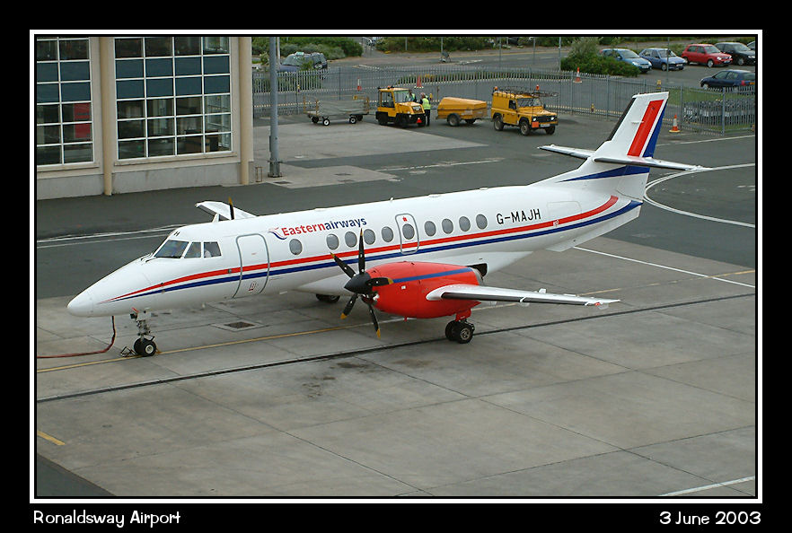Eastern Airways Jetstream 41, G-MAJH, parked on the east apron