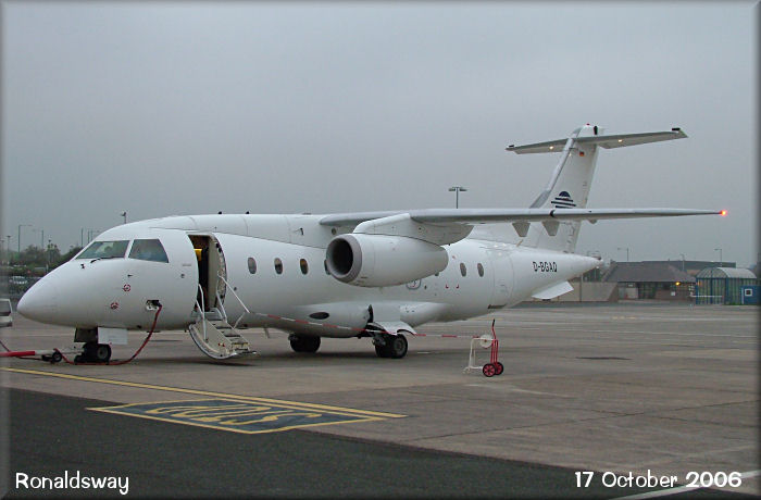 Cirrus Aviation Dornier 328JET D-BGAQ, operating for EuroManx, awaits fuel and passengers on stand 10.