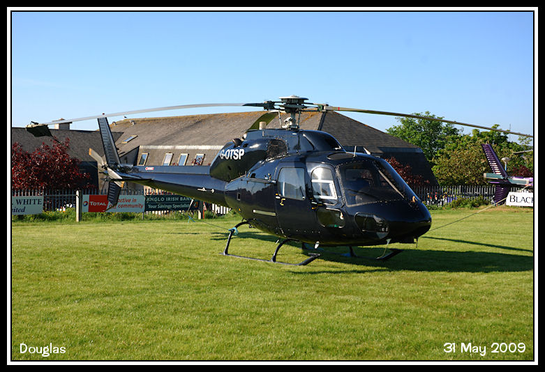 TT Race Air Ambulance Twin Squirrel G-OTSP parked by the Police Headquarters