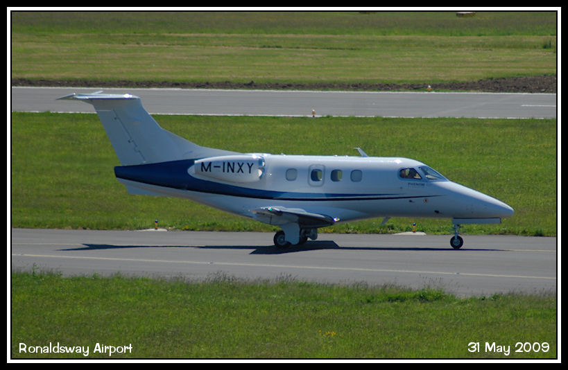 New on the Manx register is Embraer Phenon M-INXY taxying in after arrival from Wick