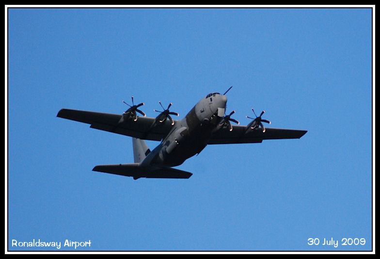 RAF Lyneham Wing C130J Hercules ZH882 climbs away from a practice approach