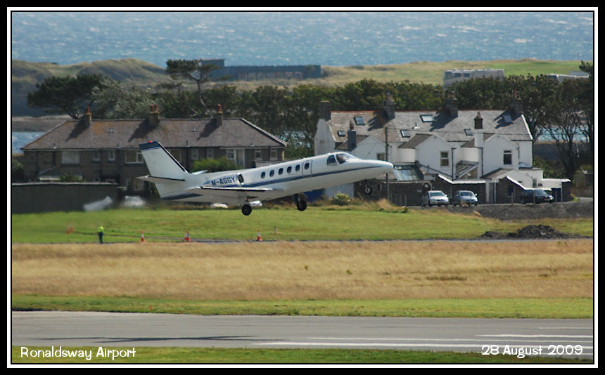 Another new Manx registered aircraft, Citation 2 M-AGGY departs runway 26