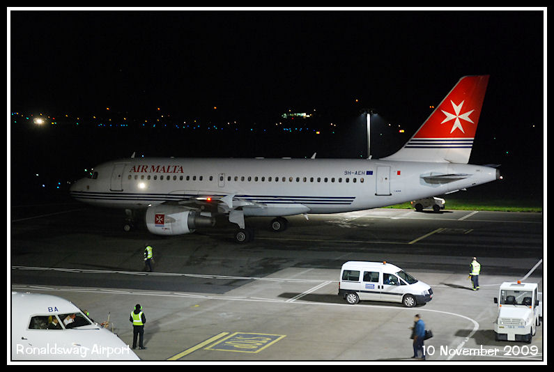 Air Malta Airbus A319 9H-AEH arrives on stand to operate a charter flight to Malta
