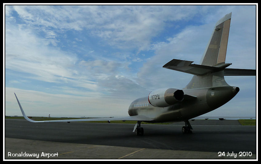 Falcon 2000 N70FA showing the blended winglet. This aircraft will be coming onto the Manx Register