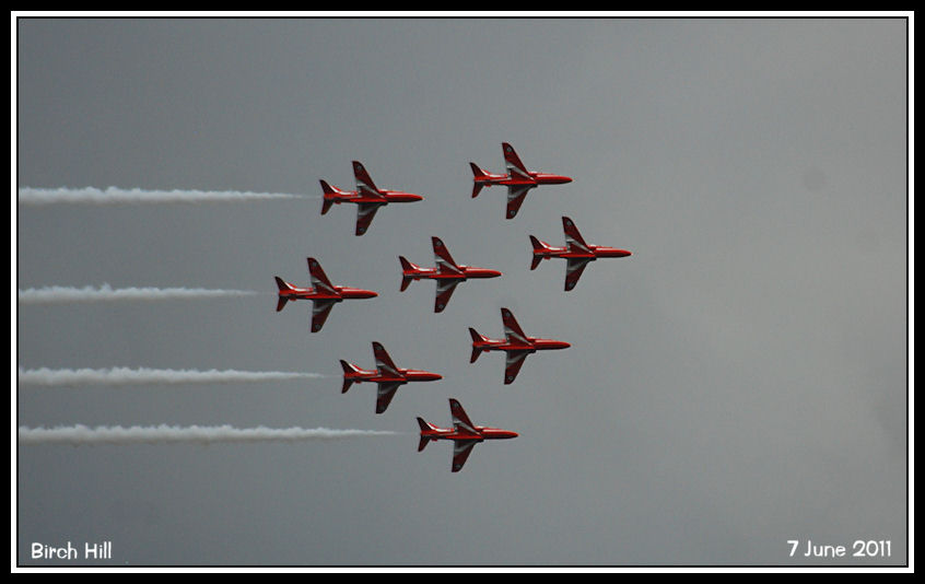 Only eight instead of nine aircraft flying due to a last minute technical glitch on one of the Hawks