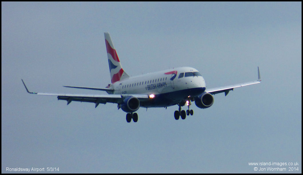 BA Cityflyer Embraer ERJ170 G-LCYH on final approach at Ronaldsway