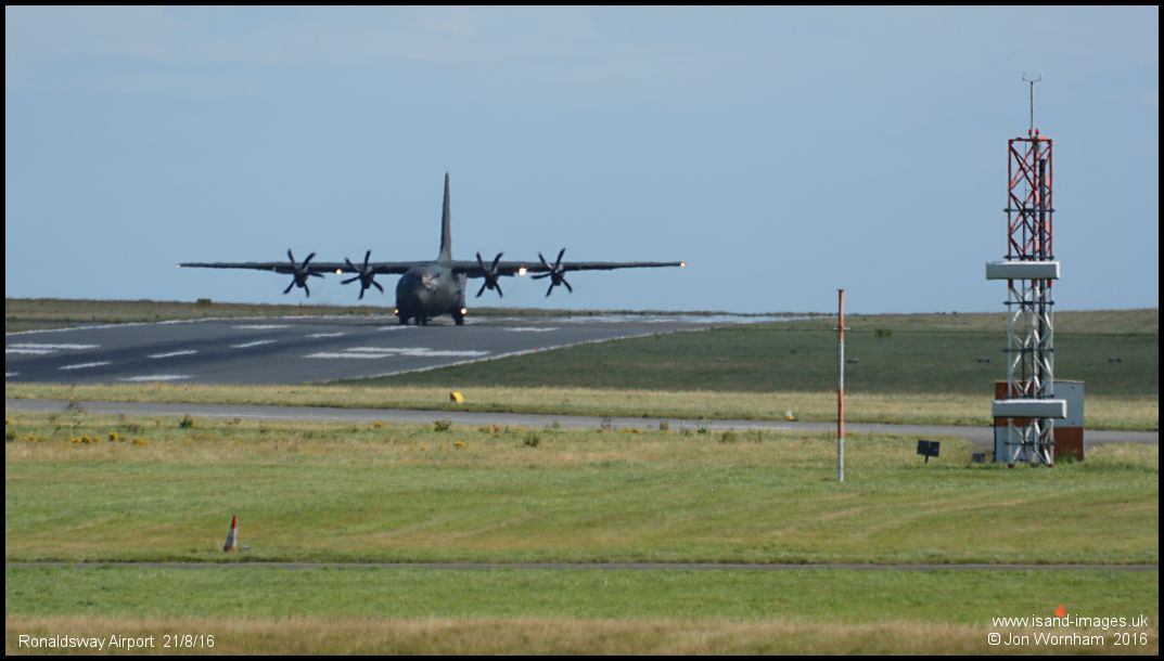 RAF Hercules C5 ZH887 'Ascot 215' starts its take off run on runway 26 at Ronaldsway