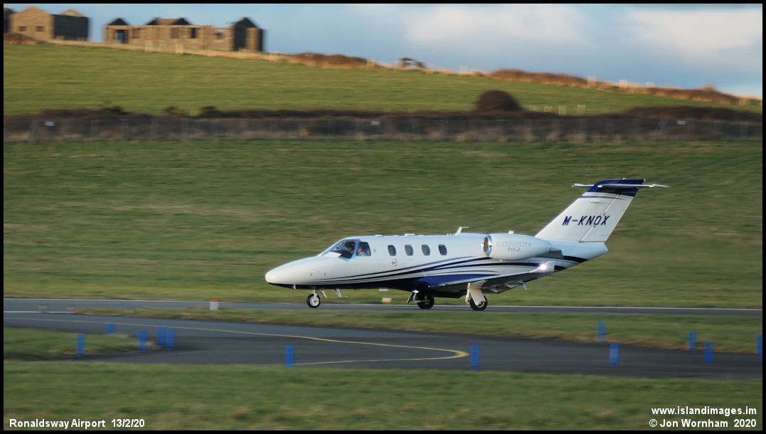 Isle of Man registered and Ronaldsway based Cessna Citation M2 M-KNOX accelerates for departure from runway 26