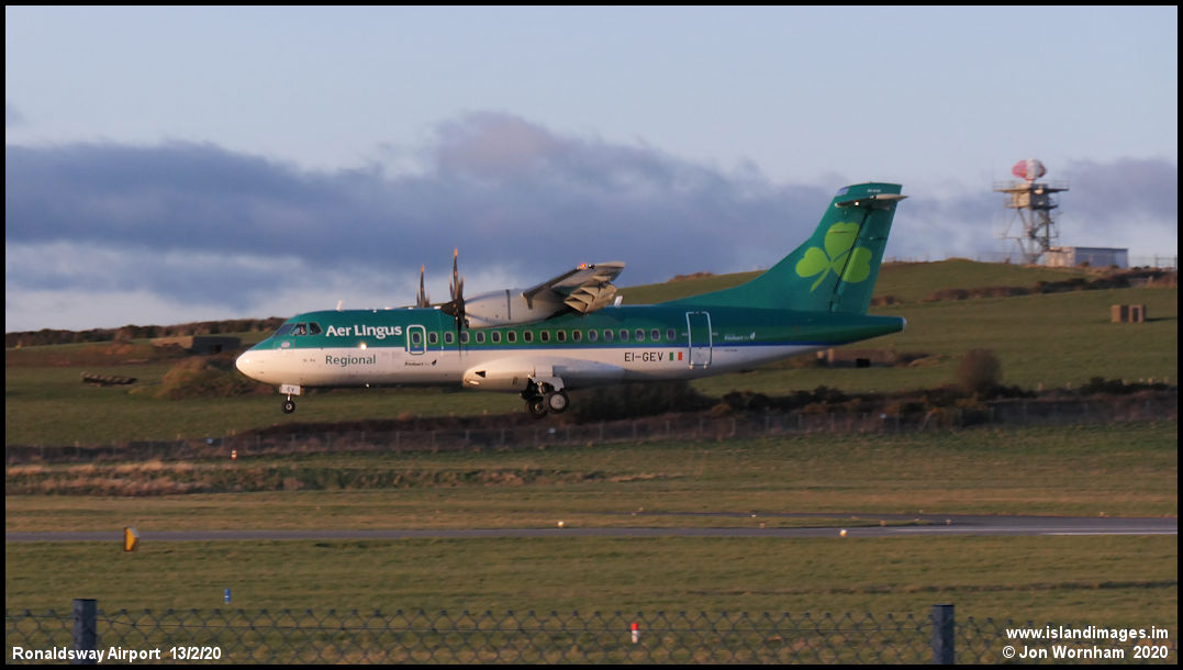 Stobart Air ATR42-600 EI-GEV about to touch down on runway 26.
