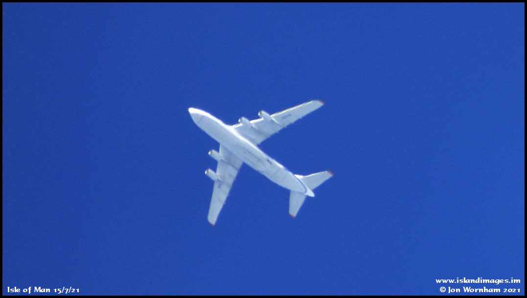 Not the sharpest of pictures but an interesting aircraft flying over the Isle of Man, Volga-Dnepr Antonov 124 Ruslan RA-82046 'VDA1317' captured en-route from Montreal to Leipzig.