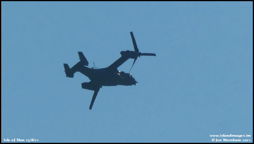 A bit of a quick 'grab shot' with the TZ200 compact camera, as we were visiting the Wildlife Park when USAF CV22 Osprey 10-0053 flew over the north of the island.