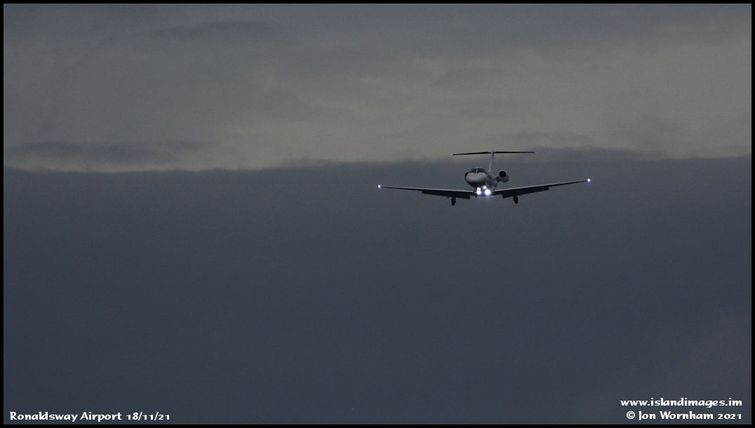 A Cessna Citation on final approach to runway 26.