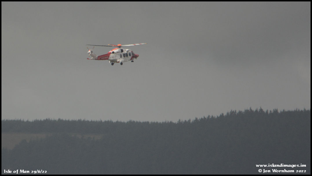 'Coastguard 199' letting down for a low level circuit of the helipads at Noble's Hospital before continuing to Ronaldsway for a low approach before heading home.