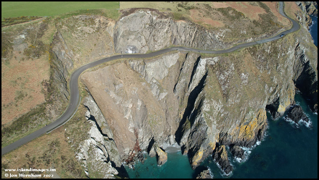 A reversal of the previous view, now looking down from over the sea. The brickwork that supported the viaduct is still there, together with twisted steelwork of the bridge on the beach. March 2022.