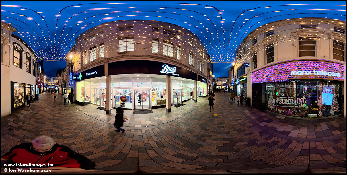 Interactive 360 degree panorama under the Christmas lights on Strand Street.