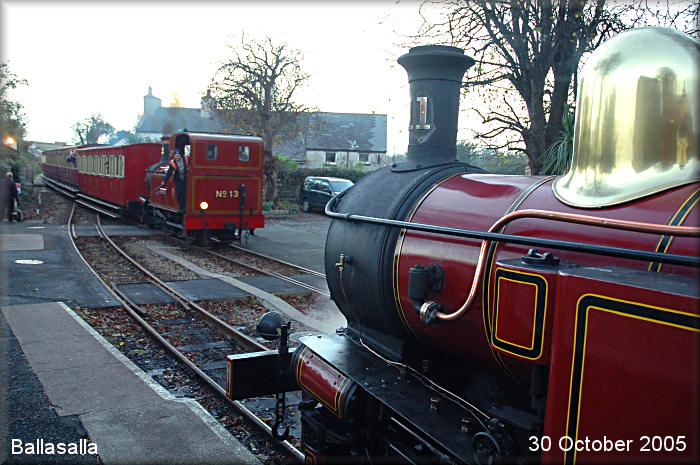 'Kissack' enters the station with the fireman ready to hand over the single line baton for the Ballasalla to Castletown section.