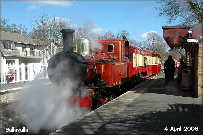 Steam Railway No.11 'Maitland' stops at Ballasalla to await the passing of the Douglas bound train.