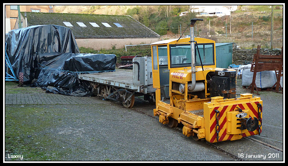 Manx Electric Railway Simplex locomotive in the siding at Laxey
