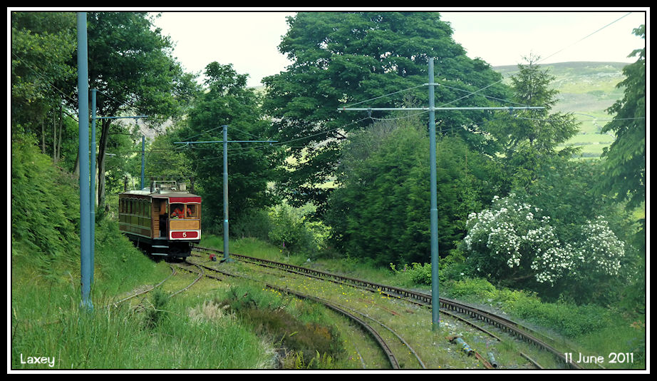 At the Snaefell Mountain depot, Car No 5 has moved off shed and is about to descend to the station
